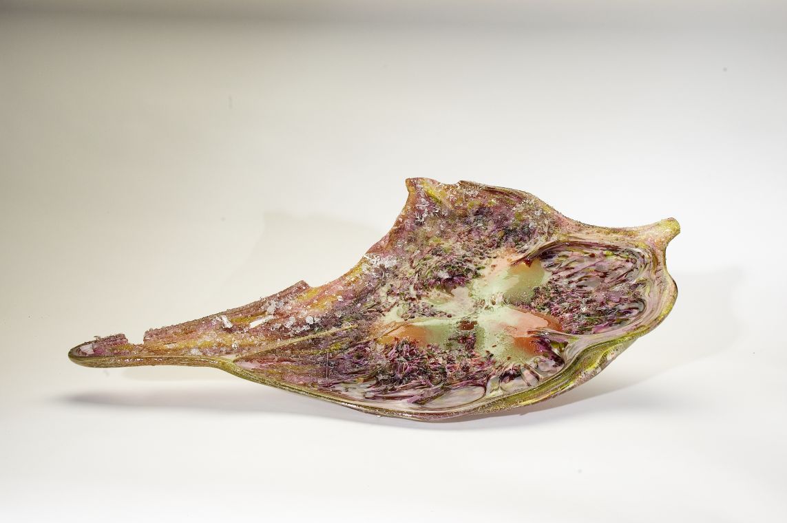 A matrix of glass threads is uplifted by erupting pressure at the mossy heart of this microcosmic canyon.